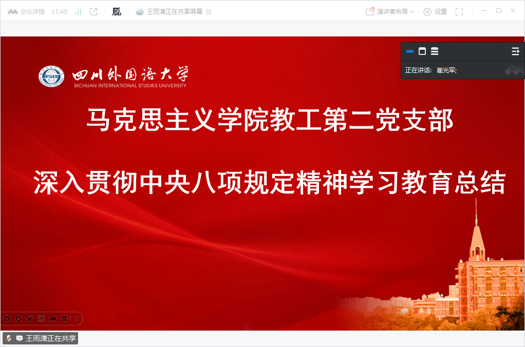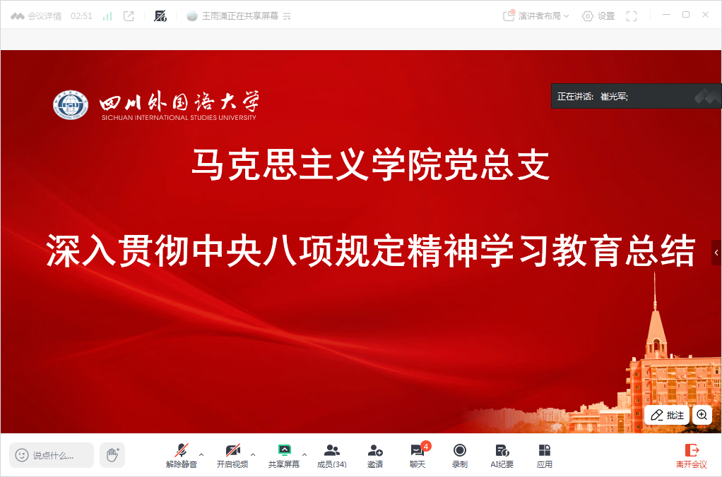 2025年9月20日,太阳成集团tyc151cc各级党组织召开深入贯彻中央八项规定精神学习教育总结会议,党总支书记崔光军主持会议。