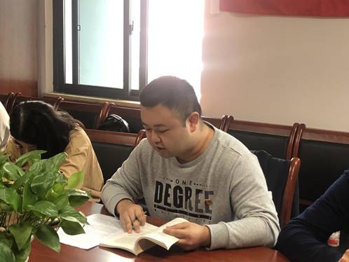首先,学习研讨。全体党员同志原原本本通读《习近平关于“不忘初心、牢记使命”论述摘编》。其中,谭力同志领学第五章内容,他结合高校思政工作深刻阐释了“四个意识”的重要性。王奕同志领学第六章内容,他谈到,始终坚持以人民为中心,把群众观点和群众路线深深根植于思想中,具体落实到行动上。白乐同志领学第七章内容,主要强调党的先进性与纯洁性就在于“党始终勇于自我革命,同一切影响党的先进性,弱化党的纯洁性问题作斗争”。