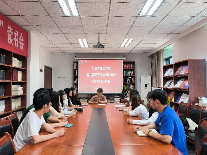 会议开始,王雨潇老师对开学以来研究生会开展的活动进行了总结,高度评价开学以来预答辩开题、公司运动会方阵、马院微信公众号建设、讲座安排等研究生会的工作,肯定了研究生会的努力。同时她也指出,目前研究生会也存在一定问题,比如部门之间的合作不足、公司的通知未传达到位等。
