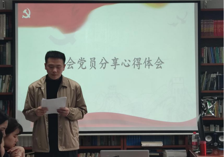 首先,李聪慧同志带领了各党员同志共同学习了习近平总书记在第十四届全国人民代表大会第一次会议上的讲话。李聪慧同志表示:“从讲话中我深切感受到作为新时代的党员,要深入学习贯彻习近平新时代中国特色社会主义思想和党的二十大精神,坚定不移用以武装头脑、指导实践、推动工作。”周鸿同志带领各党同志共同学习习近平在中央党校建90 周年庆祝大会暨 2023 年春季学期开学典礼上发表重要讲话。周鸿同志从党校初心、政治站位、党校职责和根本经验四个方面领学了讲话内容,并表示身为马院学子更要将所学理论积极与实践相结合,不断在实践过程中修炼自我党性。