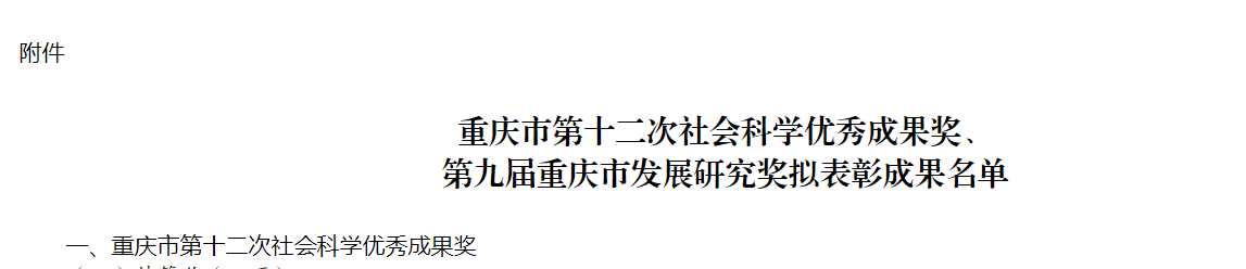 公司1项科研成果荣获重庆市第十一次社会科学优秀成果奖