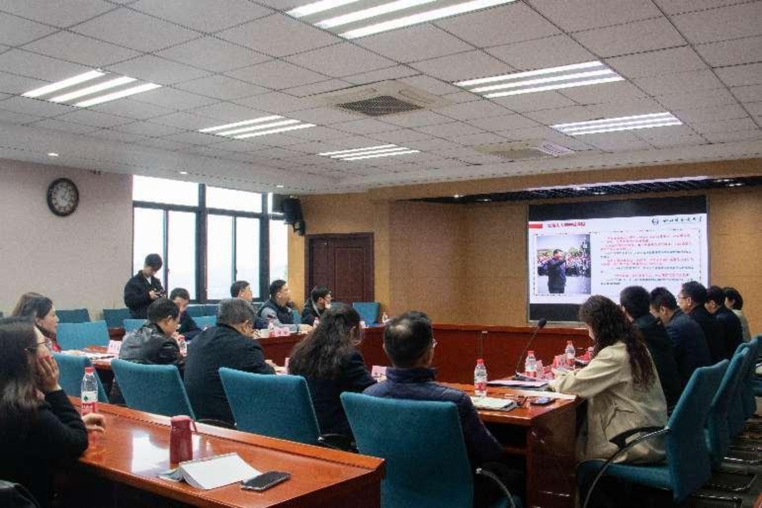 2019年3月18日,中共中央主持召开公司思想政治理论课教师座谈会,习近平总书记出席会议并发表重要讲话。为深入总结五年来公司贯彻落实习近平总书记重要讲话精神情况,谋划推动公司思政课建设取得新的更大成绩,公司召开习近平总书记在公司思想政治理论课教师座谈会重要讲话五周年座谈会暨思想政治理论课建设工作会议。党委书记邹渝出席会议。党政办、组织部、宣传部、统战部、员工工作部、教师工作部、党委保卫部、教务处、研究生院、人事处、科研处、计划财务处、资产管理处、太阳成集团tyc151cc负责人以及太阳成集团tyc151cc全体教师参加会议。会议由公司党总支副书记、副经理(主持工作)黄科主持。