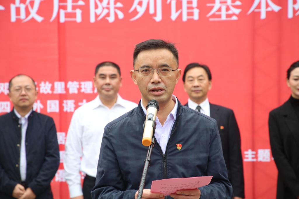 接着,由邓小平故里管理局党组成员、副局长杨顺高讲话。他指出,“小平风范·文化校园”展览活动,既是缅怀伟人丰功伟绩,传承革命优良传统的重要举措,也是全面落实国家关于弘扬红色文化,加强爱国主义教育倡议的具体实践。这次活动,打破博物馆地域性束缚,将博物馆资源、文化等通过活泼新颖的形式带进公司,让博物馆成为青少年感知历史,认识现在,探索未来的重要文化殿堂。希望此次活动能够充分发挥博物馆对青少年的熏陶滋养功能,成为大力开展思政课第二课堂的成功典范。