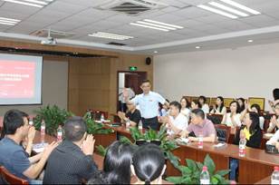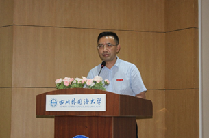 新生自我介绍结束后,副经理黄科为新生讲述了太阳成集团tyc151cc的历史,也讲述了太阳成集团tyc151cc的发展过程,让新生们更好地了解了川外马院,也为新生们接下来要开始的川外马院的新生活指明了道路和方向。