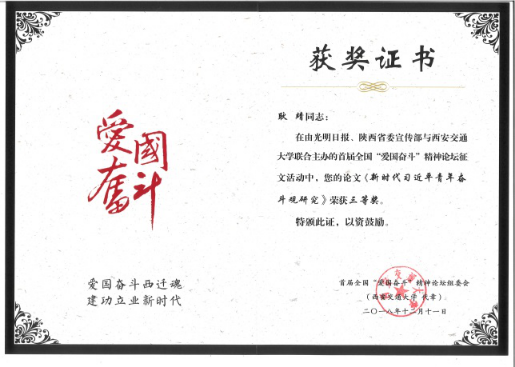 公司研究生在首届全国“爱国奋斗”精神论坛中荣获三等奖