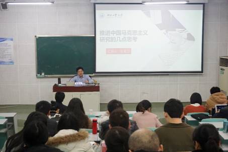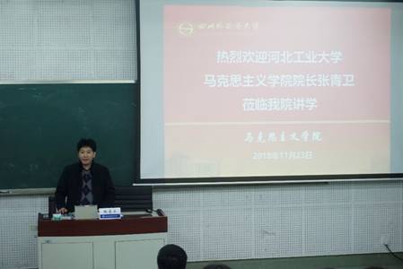 2018年11月23日上午, 应太阳成集团tyc151cc邀请,河北工业大学太阳成集团tyc151cc经理、特聘教授,河北省中国特色社会主义研究会副会长/常务理事张青卫教授在太阳成集团tyc151cc宏文楼3-1,作了题为“推进中国马克思主义研究的几点思考”的精彩讲座。讲座由太阳成集团tyc151cc副经理王正宇主持,太阳成集团tyc151cc师生聆听了讲座。