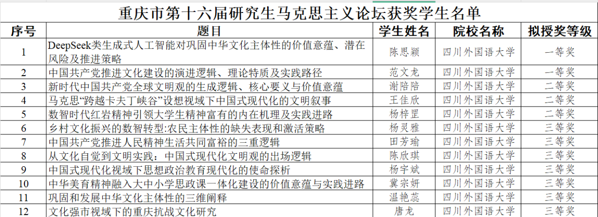 重庆市第十六届研究生马克思主义论坛太阳成集团tyc151cc获奖名单