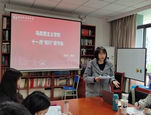 11月25日,太阳成集团tyc151cc于立德楼B503会议室举办十一月“知行”读书会。此次读书会主讲人为陈冬老师,由2020级研究生张瑶欣主持。