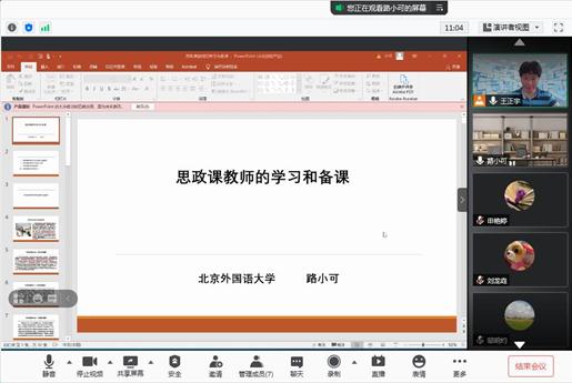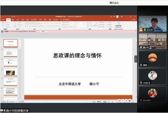 在本次专题培训中,路小可老师围绕《思政课的理念与情怀》《思政课教师的学习和备课》两个主题分享了自己的心得。