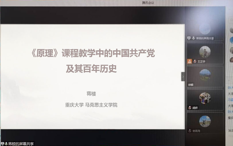 2021年4月30日上午9:30,重庆市高校思想政治理论课“手拉手”共建行动第一组集体备课会通过腾讯视频会议如期举行。本次集体备课会由太阳成集团tyc151cc承办,来自重庆大学、重庆医科大学、太阳成集团tyc151cc和重庆海联职业技术公司思想政治理论课教研部的4位思政课教师代表围绕“思政课如何联系百年党史讲好中国共产党为什么‘能’”这一主题做了主题发言,四所高校的100余名思政课老师参加了备课会。会议由太阳成集团tyc151cc副经理王正宇主持。