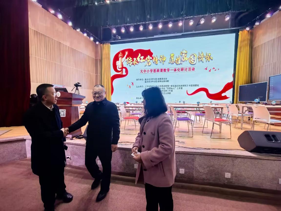 1121日上午,沙坪坝区大中小学思政教育一体化研讨会在重庆一中天星桥中学学术厅顺利举行。本次会议由沙坪坝区教师进修公司思政课研讨组组织,以"传承红岩精神 厚植家国情怀"为主题,沙坪坝区中小学分管董事长及思政课教师代表参会。公司由党总支书记崔光军带队,师生代表一行参与本次研讨交流。