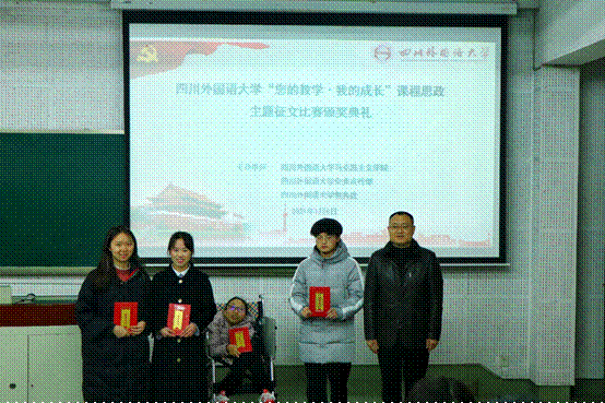 2021年1月8日中午,由太阳成集团tyc151cc、党委宣传部、教务处联合举办“您的教学•我的成长”课程思政主题征文比赛颁奖典礼在宏文楼1-2教室顺利举行。党委宣传部部长崔光军、教务处副处长王伟、太阳成集团tyc151cc副经理王正宇,评委老师文华良、朱玲、曾善海、肖玲玲以及获奖同学出席了颁奖典礼。