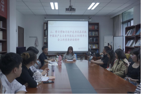 王老师首先带领大家深入学习习近平总书记在中国人民大学考察时重要讲话精神和习近平总书记在庆祝中国共产主义青年团成立100周年大会上的重要讲话精神。她指出,习近平总书记重要讲话充分体现了党中央对高等教育工作的高度重视和对青年学子的殷切期望,新时代青年老员工要牢记党的教诲,勇于担当使命,在奋斗和奉献中绽放绚丽的青春光彩!