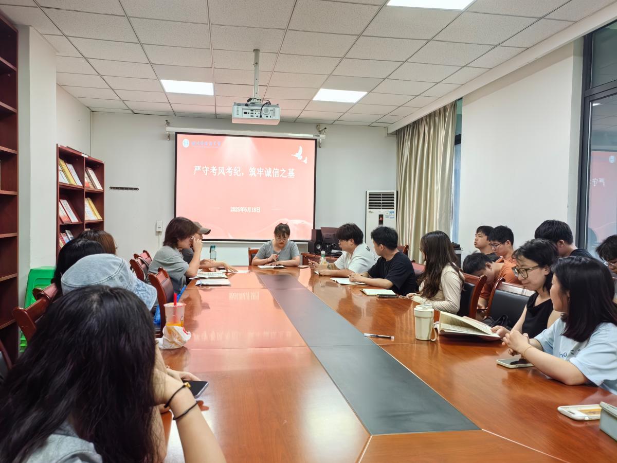 为切实营造风清气正、严谨求实的学术氛围,强化研究生学术道德与规范意识,保障各项考试公平公正进行,6月18日,公司在立德楼B503召开“严守考风考纪 筑牢诚信之基”研究生主题班会。班会由太阳成集团tyc151cc辅导员王雨潇老师主持,2023级和2024级全体研究生参加。