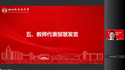 自我介绍后,新生代表刘瀚声围绕学习目标、为人处事、学习态度三个方面进行了阐述。老生代表张奉在送上对学弟学妹们的祝福后,对学弟学妹们提出了几点期盼。公司教师代表、硕士生导师邹慧给同学们提出了学习建议,并表达了对未来的美好期望。