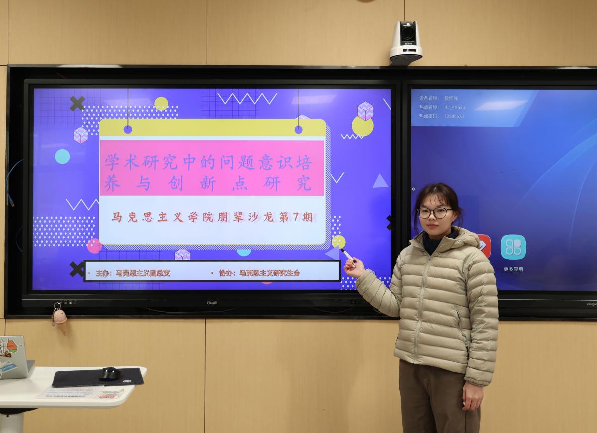 为帮助公司研究生提升学术研究能力,培养扎实的问题意识与创新思维,公司于1月5日在歌乐楼A612成功举办主题为“学术研究中的问题意识培养与创新点研究”的朋辈沙龙活动。本次活动由2024级马理论1班研究生陈思颖主讲,公司全体研究生参与。